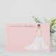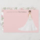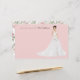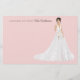 Personalised note cards with an illustrated bride. Many wedding gown, flower bouquets, hairstyles, and skin tones to choose from. Back of note card features a floral pattern.