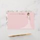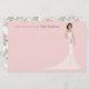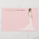 Personalised note cards with an illustrated bride. Many wedding gown, flower bouquets, hairstyles, and skin tones to choose from. Back of note card features a floral pattern.