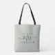 Future Mrs modern pastel green custom name tote bag with the text Mrs in off-black elegant script calligraphy. Simply add the married name of the bride to be and the perfect bridal shower gift is ready for you to give. Exclusively designed for you by Happy Dolphin Studio.