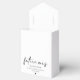 Express your gratitude to your guests with the "Future Mrs. Modern Handwriting Script Favour Box." This elegant, minimalist design with a modern handwriting script perfectly matches your bridal shower decor. These favour boxes add a touch of sophistication to your event and are a beautiful way to show your love and appreciation to your guests. Easily customise them by adding the name and event information, creating a unique and personalised touch for your bridal shower.