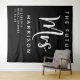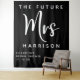 Modern and elegant "The Future Mrs" personalised black photo booth tapestry for your bridal shower. "Mrs" is written in a large white script, and you can personalise with your future married name, first name and shower date. The bottom corner is left blank for an area for your guests to take pictures.
