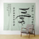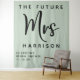 Minimal modern "The Future Mrs" personalised sage green photo booth tapestry for your bridal shower. "Mrs" is written in a large elegant script. Personalise with your future married name, first name and shower date. The bottom corner is left blank for an area for your guests to take pictures.