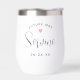 A romantic Future Mrs thermal wine tumbler featuring the phrase "Future Mrs" in arched type with a pink heart, a custom last name in elegant script, and the wedding date beneath. A perfect engagement gift or bachelorette party accessory for the bride-to-be. Celebrates the exciting countdown to the big day in style. All text is fully customisable.