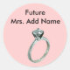 Future Mrs. TStickers and Gifts and customisable Future Mrs. Stickers and bridal favours. You can change the typeface and colour of the text on these customisable bridal tee shirts, favours and giftware featuring picture of a diamond engagement ring. Personalise with the Bride's Future Name. From "http://www.lesrubaweddings.com">Lesruba Weddings.