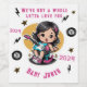Charming Illustration: Features a playful rocker girl, complete with a mini guitar and cute band tee, set against a backdrop of soft, pastel colours and whimsical patterns.