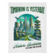A retro-futuristic cityscape where past and future converge amidst green, lush skyscrapers. Featuring the slogans 'Tomorrow is Yesterday,' 'Nature Reclaims,' and 'Sustain the Future,' this theme champions a vision of sustainable living. It underscores the balance between technological advancement and ecological preservation, illustrating how our future sustainability efforts must revive and respect the lessons of our past.