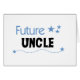 Future Uncle T-shirts, mugs, magnets, cards, buttons, hoodies, keychains, and other future uncle apparel and gift items with a blue and black text and star design.