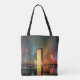 Futuristic Cityscape with Neon Reflections Tote Bag