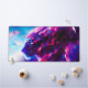 A powerful cosmic leopard emerging from vibrant clouds of neon pink, electric blue, and deep violet.