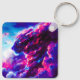 A powerful cosmic leopard emerging from vibrant clouds of neon pink, electric blue, and deep violet.