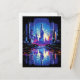 Futuristic Cyberpunk City Skyline Announcement Postcard