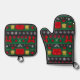 Futuristic Festive: Ugly Red Snowflake Pattern Oven Mitt & Pot Holder Set