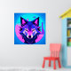 Futuristic Neon Wolf Face in Geometric Art Poster