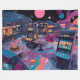 A vibrant retro arcade is set against the backdrop of space with colorful planets and stars. Rows of classic arcade machines fill the interior, creating a nostalgic yet futuristic atmosphere.
