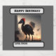 Pictured is a futuristic robotic Emu with Birthday text boxes you can personalize if you wish