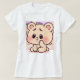 This is a kawaii-style digital illustration of a shy little bear. The bear has big, glossy eyes, blushing pink cheeks, and a worried expression while sitting with one paw touching its face. The background features soft pastel-coloured bricks, enhancing the cute and gentle anime-like atmosphere.