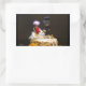 Fuzzy bride and groom on cake. rectangular sticker
