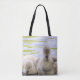 Fuzzy cygnets design this tote.