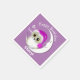 Cute whimsical fuzzy little owl in his funny cerise pink night hat; sitting on a smiling crescent moon. Adorable paper napkins for kids having a birthday party sleepover and easy to customise with your own text at no extra charge.