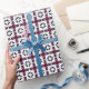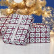 Illustrated pattern design using fluffy cross stripes in red, simple black flowers and white fluffy square shapes; a whimsical twist to a classic square pattern by Contemporary Artist, Kim Niles. ©️Kim Niles, KiniArt™️ - All Rights Reserved