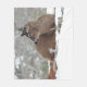 Fuzzy white tail deer fawn with her winter coat, resting in the snow.
