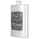 The product is a good size and came exactly as it was pictured. The lid is not attached to the flask, which could be dangerous on drunken nights... The print came out surprisingly well and looks very sharp. Would definitely recommend.