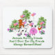 A pig, cow, calf, sheep and chickens frolic in a pasture with trees, flowers, and a George Bernard Shaw quote: "Animals are my friends and I don't eat my friends."
