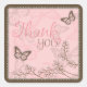 Sweet monarch butterflies and rhinestone florals with novelty lace trim G monogram for a girl baby shower thank you sticker.