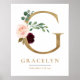 G Letter Monogram Name Marsala Floral Nursery Poster