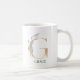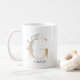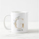 Letter G monogram floral. Letter G in golden brown texture accented with green watercolor compound leaves, flower blossoms and gold dust. Personalised with name in matching font.