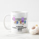 No need to be a biologist to enjoy this mug featuring signal transduction from a G-protein-linked receptor following interaction with its hormone ligand. In biology, signal transduction is a mechanism that converts a mechanical or chemical stimulus to a cell into a specific cellular response. Signal transduction starts with a signal to a receptor, and ends with a change in cell behaviour. Showcase your wry scientific attitude with this memorable cell biology mug with the saying "G-Protein Signal Transduction Inside"!