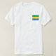 The front of this t-shirt bears a small Gabonese flag with its familiar green, yellow and blue horizontal bands, while the back displays a relief map of Gabon. Available on t-shirts, sweatshirts, polos, long-sleeves and more.