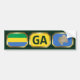 Bumper sticker displaying an attractive combination of the Gabonese flag, map and 2 letter country code.