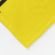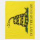 This design features the Gadsden Flag, a historical American flag that contains an illustration of a timber rattlesnake raising itself from the grass in an aggressive posture; there is a bright yellow background that covers the flag. The text says "Don't tread on me" in capital lettering.