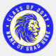 This blue and yellow lion mascot on a sticker with the name of the graduate and their graduation year is perfect for sealing grad party invite and graduate thank you note envelopes. With extended space for longer names, if your grad has a shorter name, you can also add a "From" to fill the space and customise further. These stickers are also perfect for favour bags or even as their own small favour for family members and friends attending your son or daughter's graduation party!
