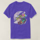 I give wanted to give this a 4 instead of a 5 because these Basic DARK T0shirts run unexpectedly SLIM or Narrow. Which is great if you do not have a potbelly, but I have a paunch. It isn't the shirt's fault that I've got a beer belly. The design and shirt itself is a quality cotton shirt. The color is more of a deep purple, but still a very pretty color. The Basic DARK T-shirts run a bit SLIMMER than the Basic Ts. The neck is a fraction narrower (or seems to be narrower) also. I'm a paunchy middle-aged woman and my neck is 12 inches (31cm) thick and the neckline fell about the same as in the photo of the man, and I had the desire to tug it a bit. So if you're a thick necked man or like loose shirts, be aware these are slimmer shirts. Once I get rid of my lockdown paunch it'll look great. The shirt washed well in cold water with no apparent bleeding. We don't have a dryer, so it hung dry. Did not shrink. Love the colors and the design. The design looks smaller on my shirt than it does on the model on-line. But still, it looks good on the shirt. The printing looks as it does on the model, just the size seems fractionally smaller. Washed garment in cold water, hung dry and design appeared unaffected.