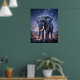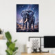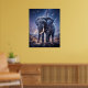 A monumental galactic elephant stands beneath a sky filled with falling stars, its massive form composed of glowing nebula textures, cosmic dust, and scattered constellations. Subtle light radiates through its body, emphasizing strength, wisdom, and ancient presence. The vast cosmic landscape and meteor-lit sky create a powerful and awe-inspiring scene. This artwork embodies resilience and quiet power, making it an ideal centerpiece for bold interiors, modern decor, and collectors of majestic, symbolic wall art.