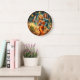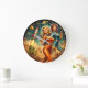 Time travel back to the Atomic Age with this bold and colorful retro clock! Featuring two fierce space heroines in vintage-style spacesuits, cosmic starbursts, rocket ships, and a curious alien sidekick, this design brings mid-century sci-fi charm straight to your wall.