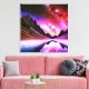 Sci fi culture inspired abstract looking night with colourful space, mountains and lake water surface. Enriching ambient of any room at home or office.