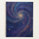 A vibrant and mystical depiction of a spiral galaxy, rendered in rich tones of deep indigo, sapphire blue, and royal purple. A brilliant, warm gold light emanates from the swirling center, contrasting with the cool, dark space and the scattering of shimmering, distant stars. The composition evokes a sense of deep space, mystery, and cosmic wonder.