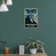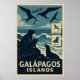 Celebrate the rich biodiversity of the Galápagos Islands with this striking retro comic illustration. Featuring frigatebirds mid-air in a fish-snatching chase, marine iguanas basking on rocks, and a curious sea lion on the shore, this design beautifully captures the rare species that make the islands famous. Rendered in muted blues and creams, this artwork pays tribute to the iconic wildlife.