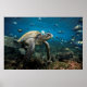 Galápagos Sea Turtle with Sergeant Major Fish Poster