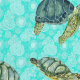 In the clear sea waters and beautiful coral of the Galapagos islands many varieties of sea turtles exist. This pattern is a hand drawn watercolor of two types of sea turtles in green, blue and aqua hues. Part of a Coastal Living collection by cheriedesues_studio.