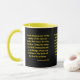 This mug features the "Galatians 3:10" bible quote scripture KJV in a unique celandine print font with yellow letters plus bible citation in this faith based theme from the King James bible. The rim & handle are glazed in matching colours available in 11-ounce or 15-ounce sizes microwave and dishwasher safe ceramic construction.