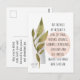 Inspirational quote postcard depicts a simple watercolor green leaf design. It feature Bible Verse Galatians 5:22-23, "But the fruit of the Spirit is love, joy, peace, patience, kindness, goodness, faithfulness, gentleness and self-control. Against such things there is no law."~