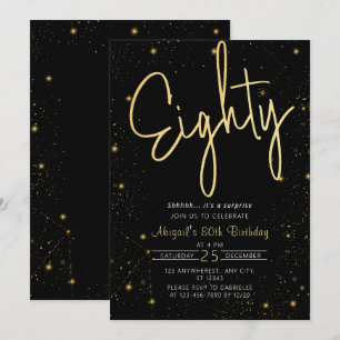 Galaxy Script Black and Gold 50th Birthday Party Invitation