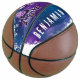 Unique personalised basketball keepsake for your All-Star basketball player. Our design features a purple and blue watercolor galaxy stary background with rustic grunge textures. Customise with the player's name and add the player's team number and year to the basketball sports emblem. Design by Moodthology Papery.