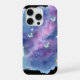 A dreamy galaxy phone case featuring soft watercolor space tones and glowing butterflies.