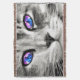 A cosy throw blanket featuring my own hand made artwork! This is a digitally created image of a cat's face with galaxy-like eyes in pink and blue. Add text if you desire. If you would like this image on a different product please contact me and I would be happy to make it for you!