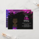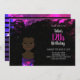 Galaxy Girl Birthday Invitation featuring voluminous curly hair Black Girl Magic illustration with dreamy eyes. The girl features glitter stars in her hair. Colours include brown, black, purple, blue, pink. Please see the illustration for reference.